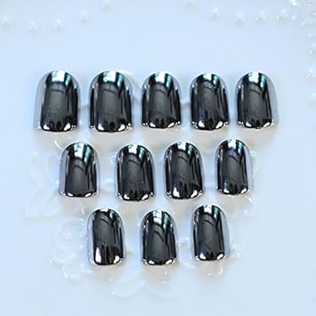 Metal Style Miroir Ongles En Acrylique Carre Noir Argent Faux