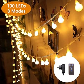Guirlande Lumineuse Exterieure Interieure Fochea 12 M 100 Boules Guirlande Guinguette 8 Modes Eclairage Avec Telecommande Pour Decoration Chambre Noel Mariage Fete Avec Eu Prise Blanc Chaud Amazon Fr Luminaires Et Eclairage